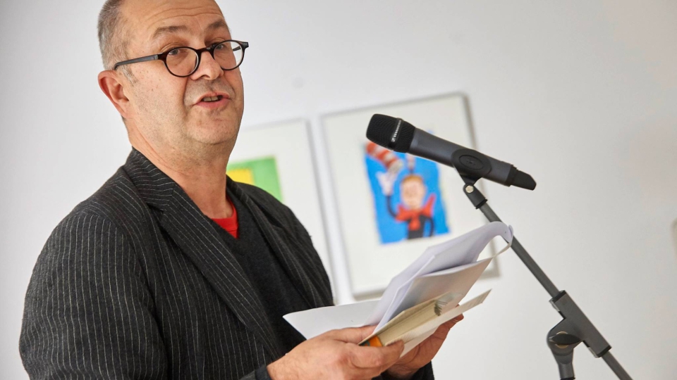 Er stellt Illustratoren, Comic- und Streetart- Künstler vor und malt exklusiv Porträts von ihnen.
