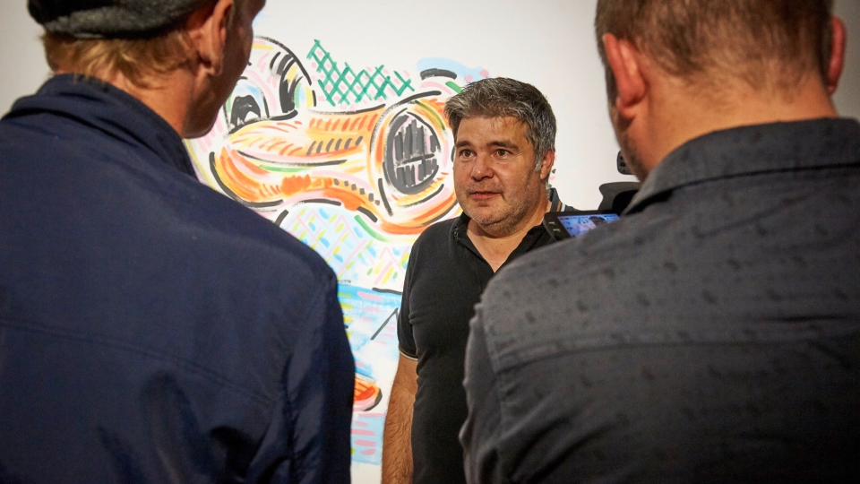 Er stellt Illustratoren, Comic- und Streetart- Künstler vor und malt exklusiv Porträts von ihnen.